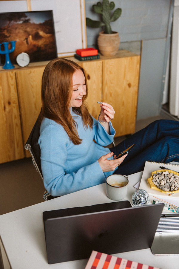 När jag plåtade åt Therese på Ginger Graphic handlade det inte om perfektion – utan om energi. Lite skevt, lite stökigt, mycket känsla. Som ett kreativt skrivbord någon glömt mitt i natten, där idéerna fortfarande ligger kvar i luften.