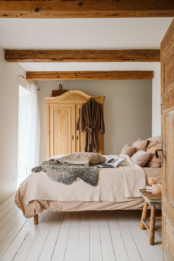 Bilderna visar inte bara väggar och möbler, utan ögonblicken mellan dem: en frukost som är uppdukad i köket, gamla golv, texturen i träet, och den värme som gör ett hus till ett hem. Lifestyle möter inredning i ett mjukt, levande ljus som skapar en helhet man vill stanna kvar i.